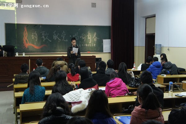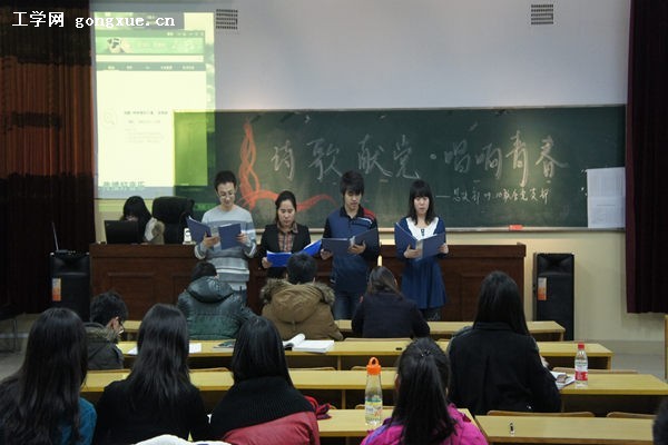 11月15日晚6点30分,思想政治教研部09、10级党支部于41号楼思政部学术报告厅举行主题为“诗歌献党,唱响青春”的诗歌朗诵比赛。本次比赛由思政部博士生党支部书记仲帅,组织委员王聪和2011级硕士思政部马克思原理党支部书记宋鹏担任评委