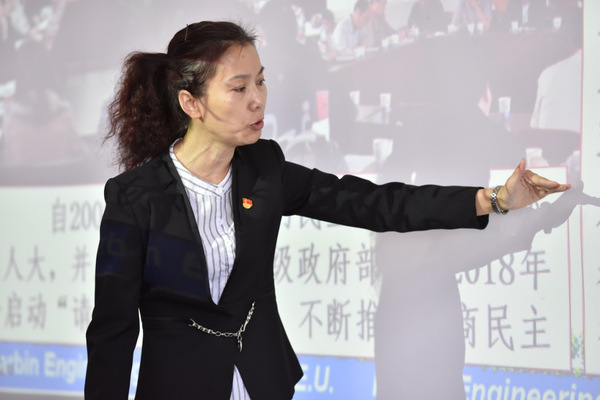 胡雪萍副教授以《坚持中国特色社会主义政治发展道路》进行了教学展示。她说,走中国特色社会主义政治发展道路必须坚持党的领导、人民当家作主、依法治国的有机统一,必须坚持正确的政治方向,我们要增强走中国特色社会主义政治道路的信心和决心。这一道路在践行有事好商量,众人的事情由众人商量的过程中,不断促进人的全面发展和社会的全面进步。