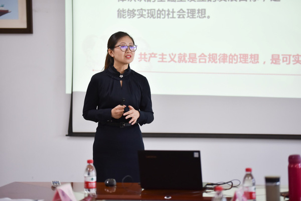 谢璐研副教授以《坚定理想信念——实现共产主义是人类历史发展的必然趋势》进行了教学展示。她说,共产主义理想是合目的性和合规律性的统一,具有深厚的历史渊源,真切的现实性,实现的历史长期性。当代大学生,要树立和坚定共产主义远大理想,投身中国特色社会主义事业的伟大实践,从我做起,从现在做起,不忘初心、继续前进,勤学、修德、明辨、笃实,善于创造,甘于奉献,努力做社会主义核心价值观的积极践行者。