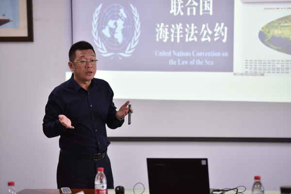 胡泊副教授以《建设新时代的海洋强国》为题进行了教学展示。他说,中国是海洋大国,经过七十年的建设正在形成具有中国特色的社会主义海洋强国,特别是十八大以来,在以习近平同志为核心的党中央坚强领导下,树立了海洋新观念,建设了强大的海军,我国的海洋事业取得了突出的成就。