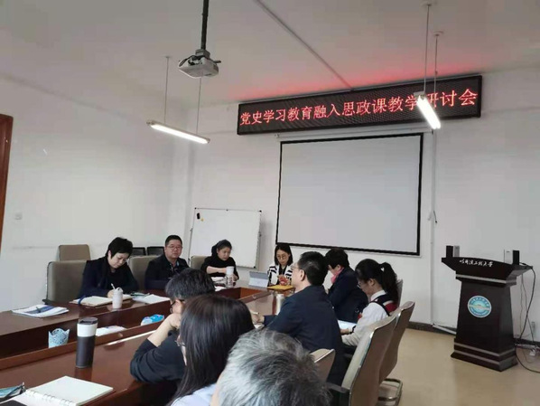 会上,各课程负责人分别就党史学习教育融入思政课教学的形式与内容,进行研讨交流。