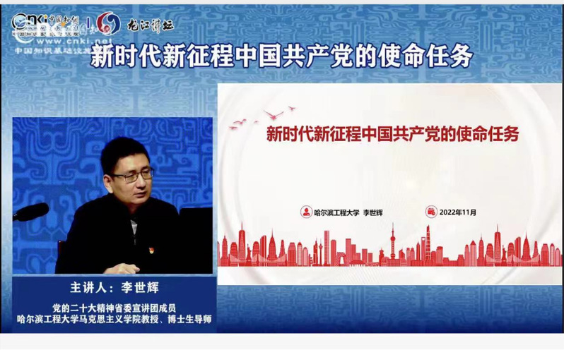宣讲团“顾问”魏潾教授,认真参加每一次集体备课,把好宣讲质量关,同时用一场场精彩的讲座,身体力行地为宣讲团作出表率。疫情期间,他先后“走进”黑龙江通普信息技术股份有限公司、北京市自来水集团禹通市政工程有限公司,通过线上专题党课培训和形势政策报告会的形式进行理论宣讲。