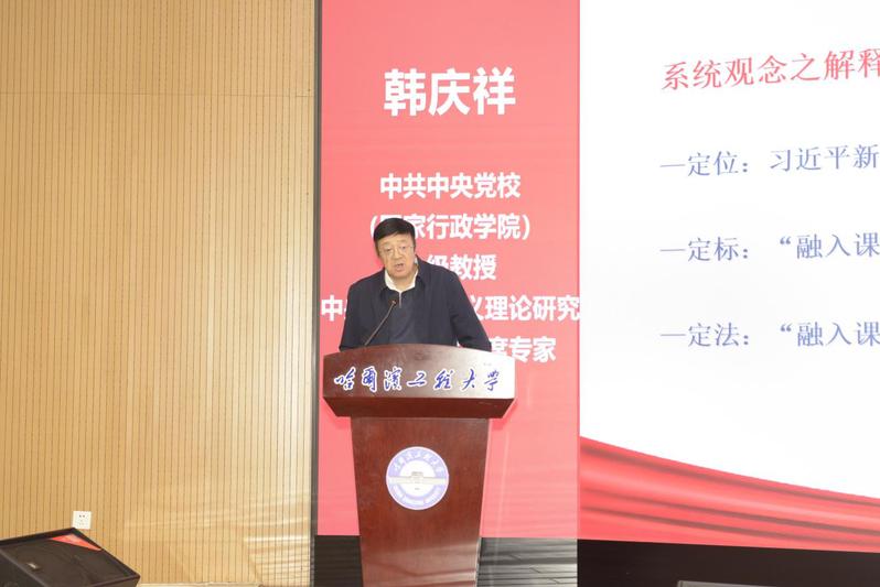 在主旨报告阶段,中共中央党校(国家行政学院)一级教授、中央马克思主义理论研究和建设工程首席专家韩庆祥以《“打铁自硬”和“立德树人”》为题,强调为更好推进大中小学思政课一体化建设,思政课教师首先要努力实现“打铁自身硬”,坚持以“八个相统一”创新思政课教学,将大中小学思政课一体化改革创新聚焦到“立德树人”实质。